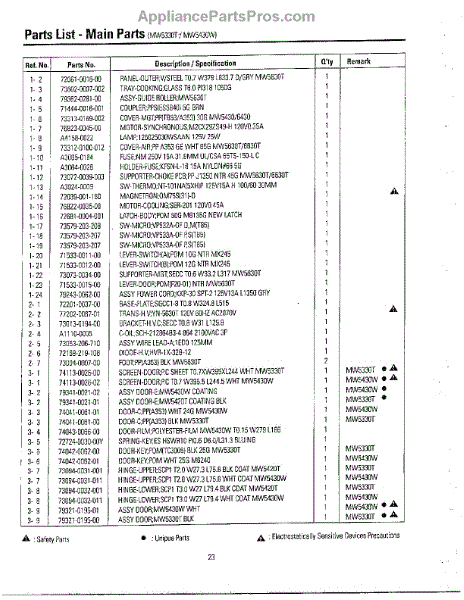 Parts for Samsung MW5330T/XAA: Oven Complete Microwave Oven Page 2 Parts