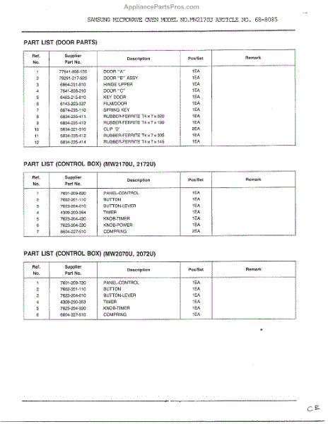 Parts for Samsung 68-8085: Oven Complete Microwave Assembly Page 5 Parts