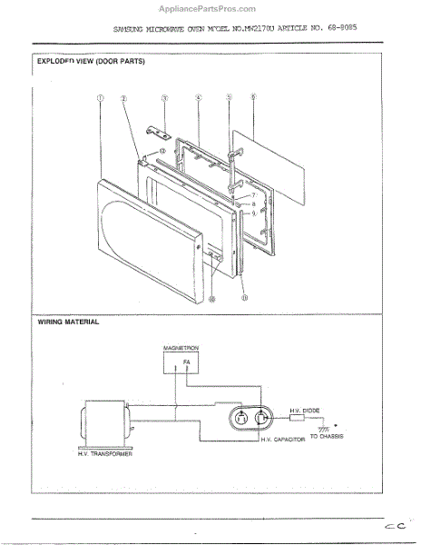 Parts for Samsung MW2170U/XAA: Oven Complete Microwave Assembly Page 3 Parts
