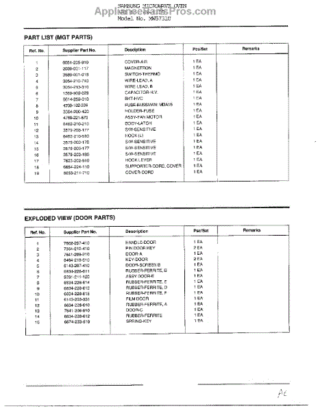 Samsung Microwave Parts