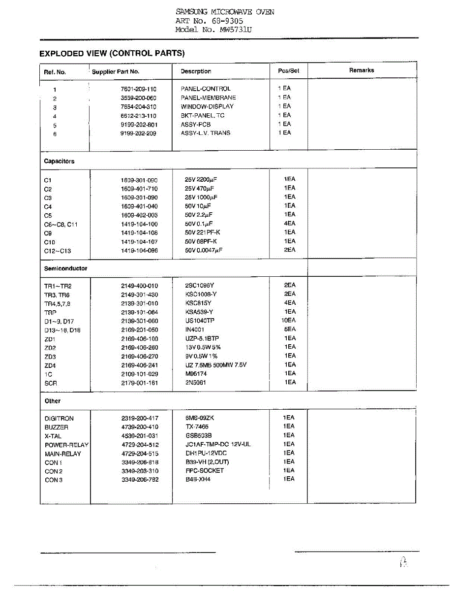 Parts for Samsung 9305: Oven Complete Microwave Oven Page 8 Parts