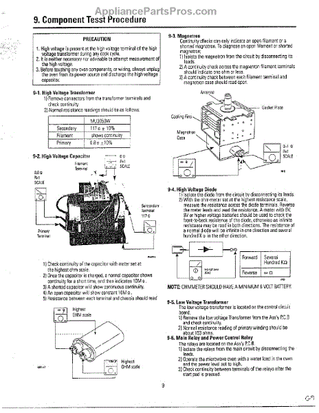 Parts for Samsung MU3050W/XAA: Oven Component Test Procedure Parts
