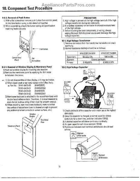 Parts for Samsung MW5430W/XAA: Oven Component Test Procedure Parts