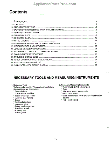Parts for Samsung MW5720W/XAA: Oven Contents / Tools / Measuring Parts