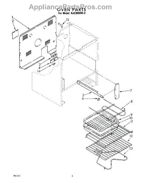 Parts for Whirlpool RJE3600W0: 06 - Oven (Continued) Parts