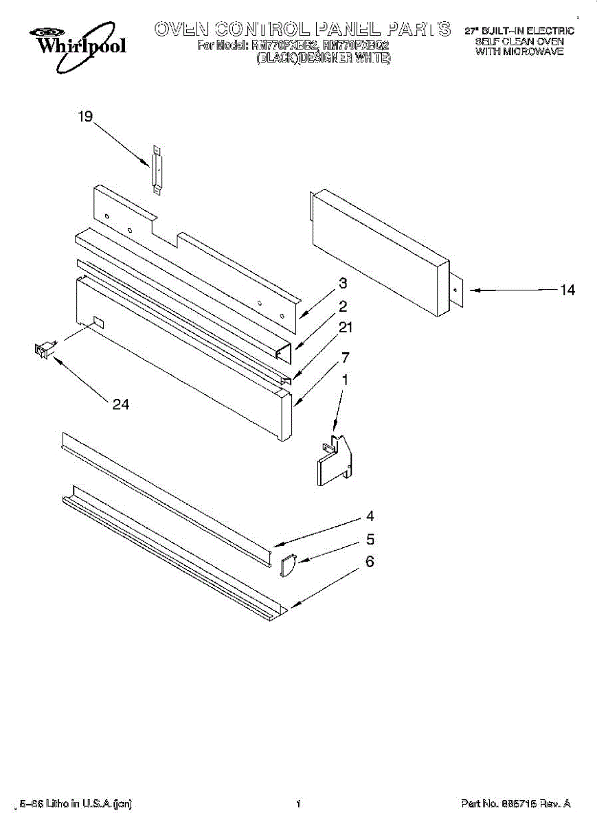 Parts for Whirlpool RM770PXBQ2: 01 - Oven Control Panel, Literature Parts