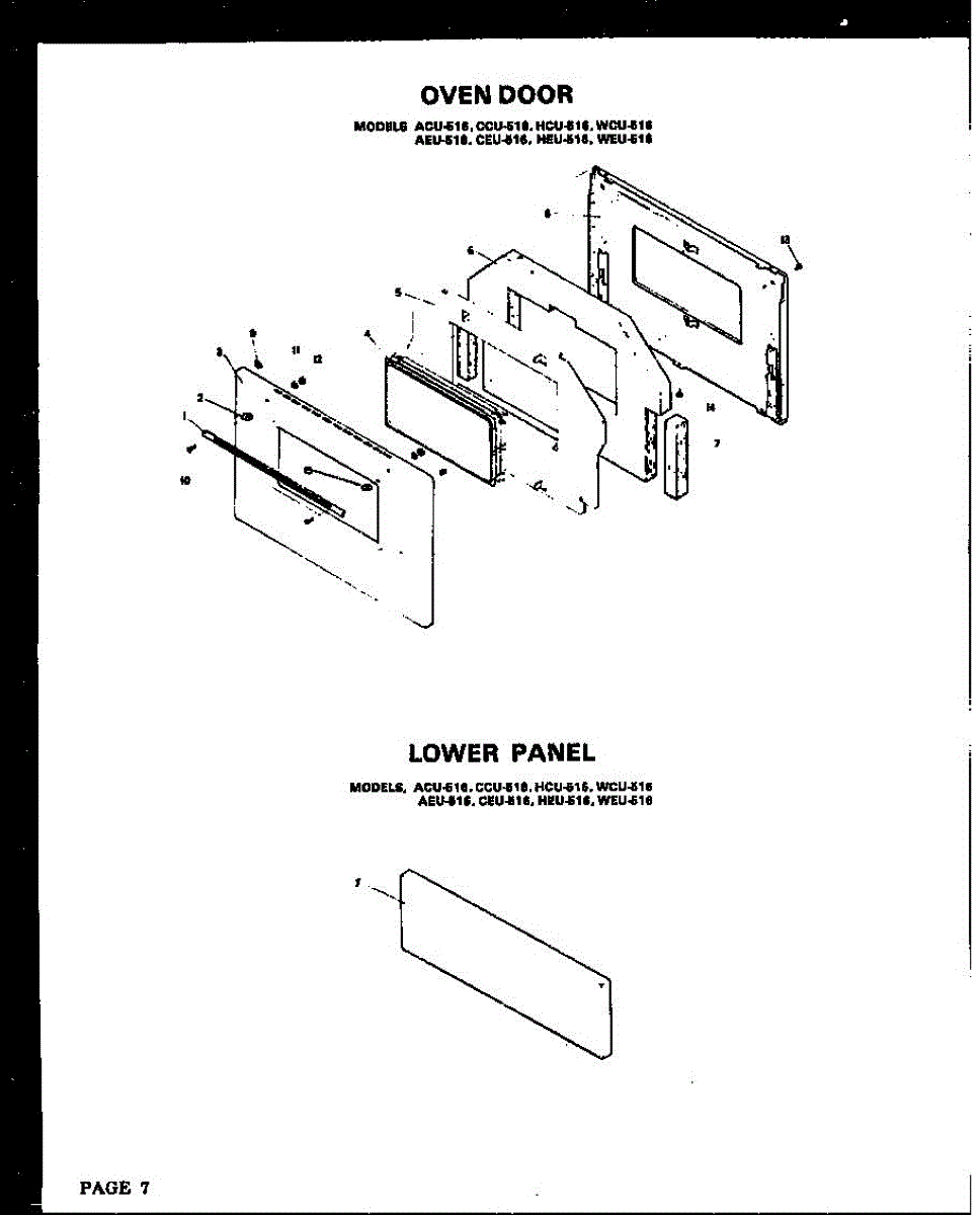 Parts for Modern Maid CEU-516C: Oven Door (Acu-516) (Ccu-516) (Hcu-516) (Wcu-516) (Aeu-516) (Ceu-516) (Heu-516) (Weu-516) Parts