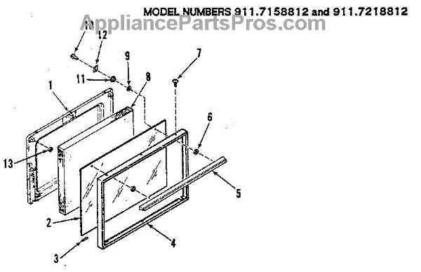 Parts for Kenmore 911.6158812 (9116158812, 911 6158812): Oven Door Parts