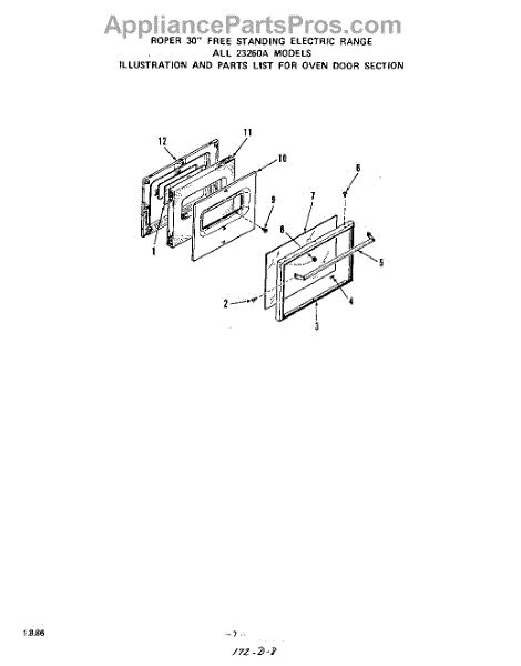 Parts for Roper 2326W0A: 06 - Oven Door Parts