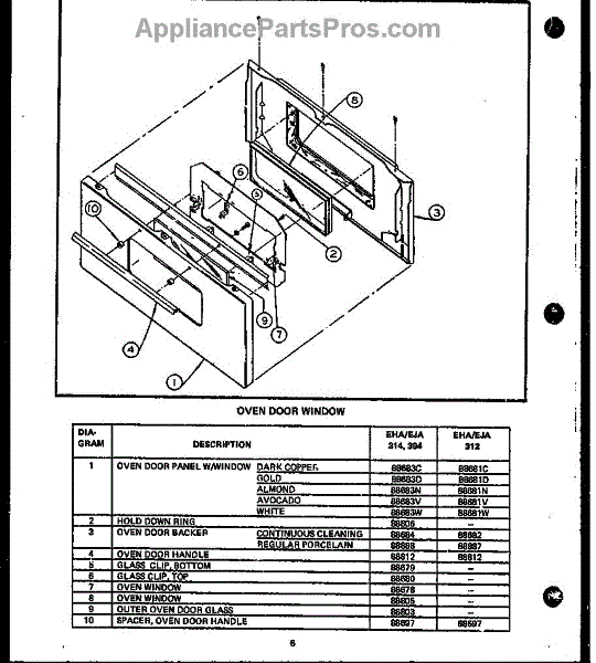 Parts for Caloric EHA312-OP: Oven Door Assembly W / Window (Eha312) (Eha314) (Eja312) (Eja314) (Eha394) (Eja394) Parts