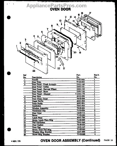 Parts for Modern Maid QDU-838D: Oven Door Assembly (Qdu-838) (Qdu-858) (Qdu-878) Parts