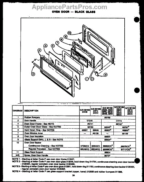 Parts for Amana GBP22AA0PU: Oven Door - Blackglass (Sbp24cb) (Gbp24cb) (Gbk24cb) (Sbk24cb) (Gbp24cc) (Sbp24cc) (Gbk24cc) (Sbk24cc) Parts