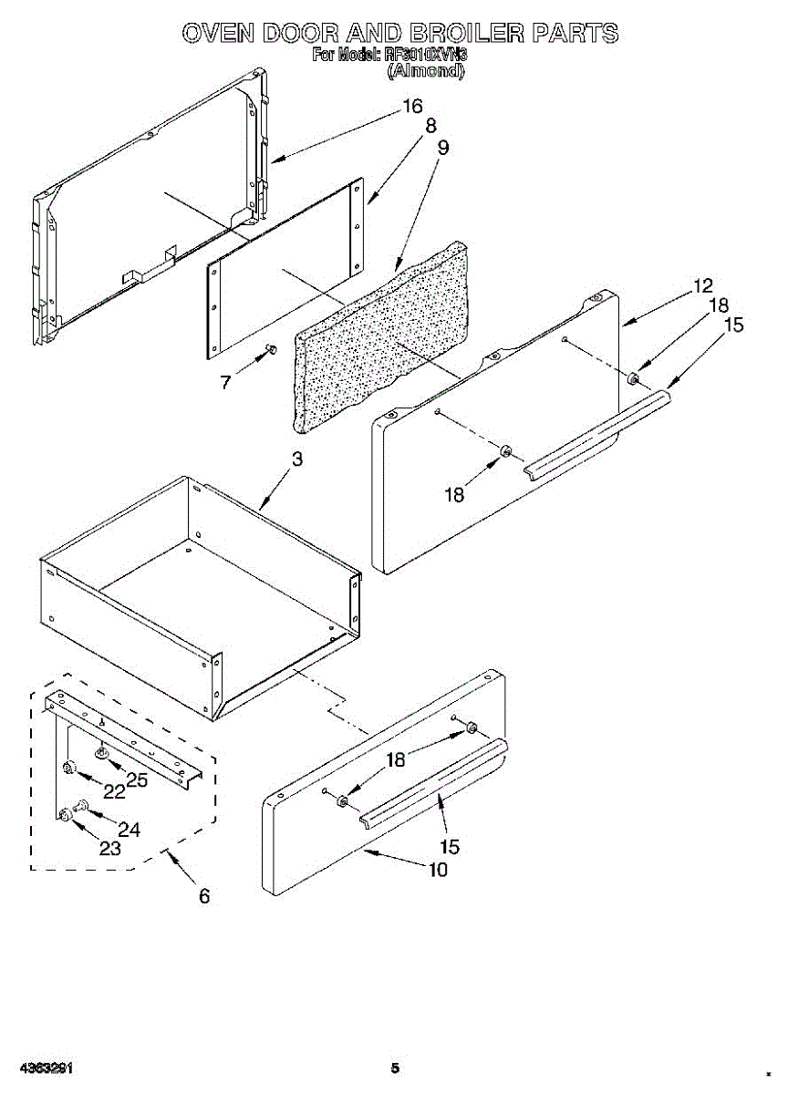 Parts for Whirlpool RF3010XVN3: 03 - Oven Door And Boiler Parts