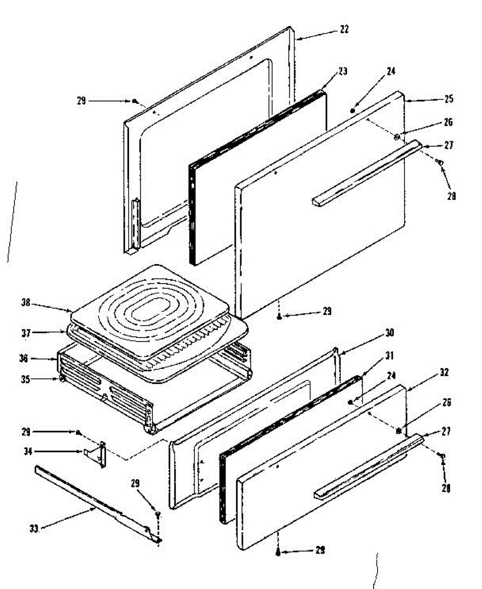Parts for Kenmore 119.7038510 (1197038510, 119 7038510): Oven Door And Broiler Sections Parts