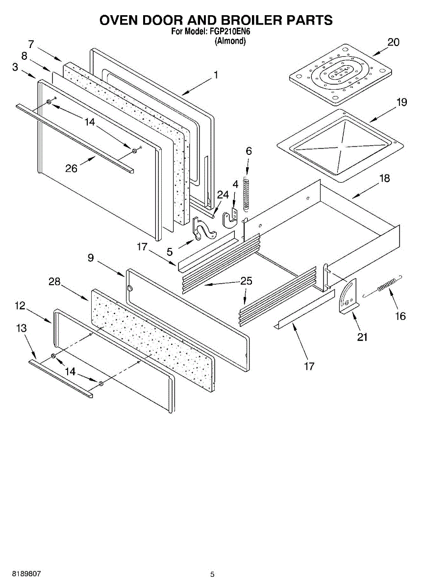 Parts for Roper FGP210EN6: 03 - Oven Door And Broiler Parts