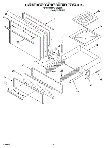 Parts for Roper FGP210EQ5: 03 - Oven Door And Broiler Parts