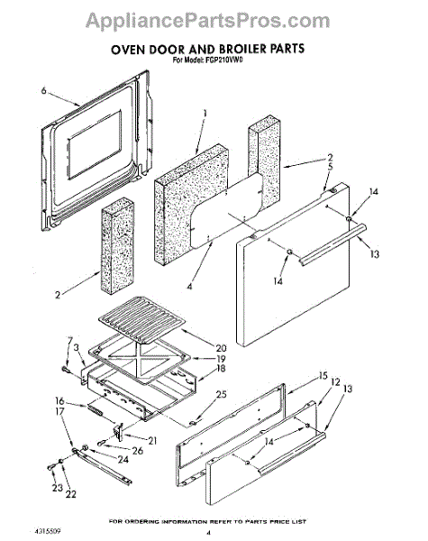 Parts for Roper FGP210VW0: 03 - Oven Door And Broiler Parts