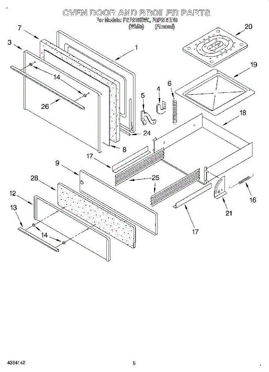 Parts for Roper FGP215EW0: 03 - Oven Door And Broiler Parts