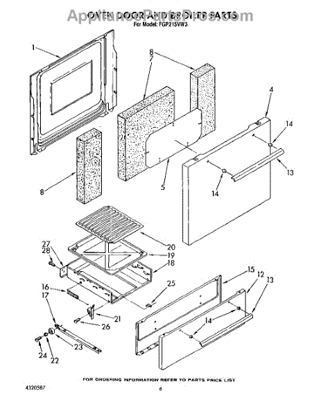 Parts for Roper FGP215VW3: 05 - Oven Door And Broiler Parts