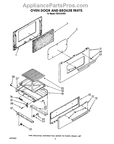 Parts for Roper FGP310VW4: 05 - Oven Door And Broiler Parts