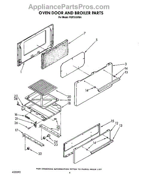 Parts for Roper FGP315VW4: 05 - Oven Door And Broiler Parts