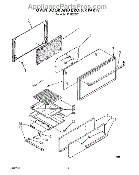 Parts for Roper SGP335XW1: 05 - Oven Door And Broiler Parts