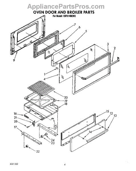 Parts for Whirlpool 1SF014BEN2: 04 - Oven Door And Broiler Parts