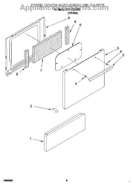 Parts for Whirlpool RF0100XRW9: 04 - Oven Door And Broiler Parts