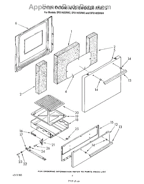 Parts for Whirlpool SF0140SRW4: 03 - Oven Door And Broiler Parts