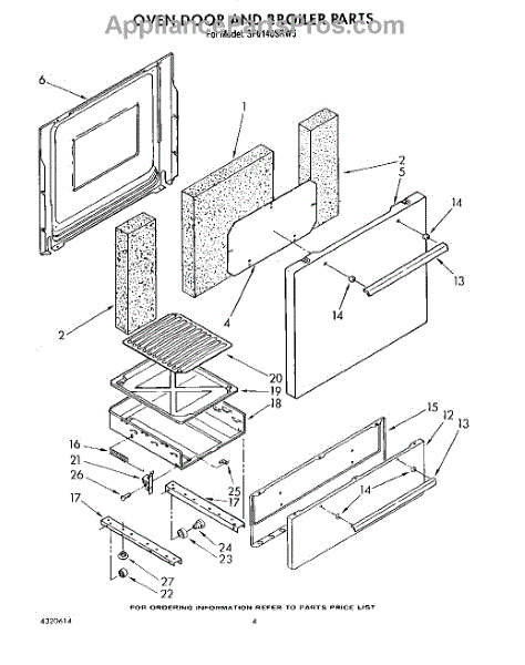 Parts for Whirlpool SF0140SRW5: 03 - Oven Door And Broiler Parts