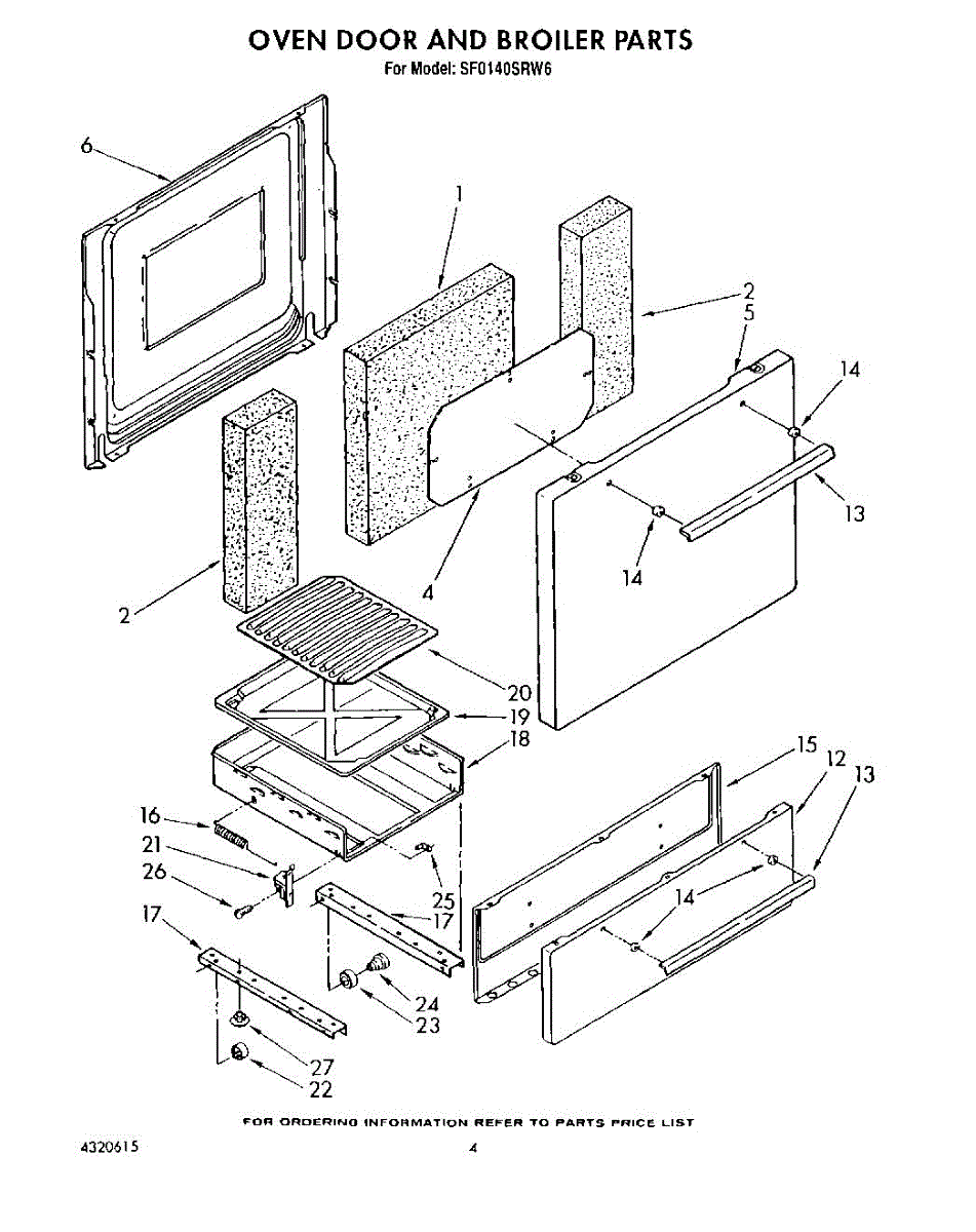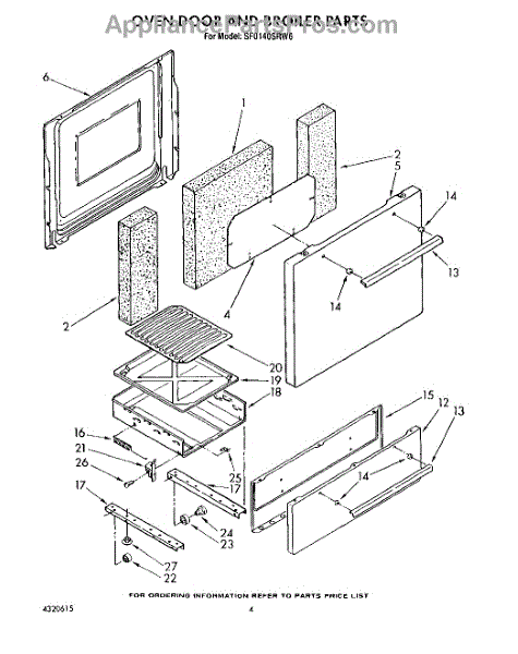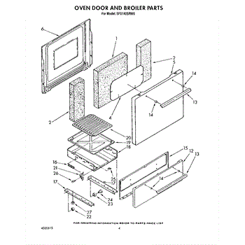 Parts for Whirlpool SF0140SRW6: 03 - Oven Door And Broiler Parts