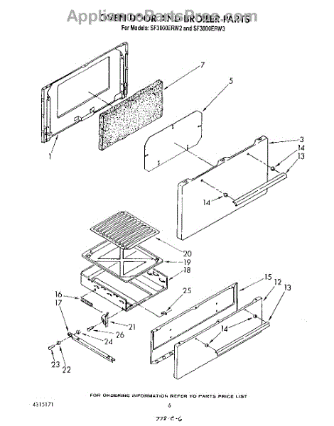 Parts for Whirlpool SF3000ERW3: 05 - Oven Door And Broiler Parts