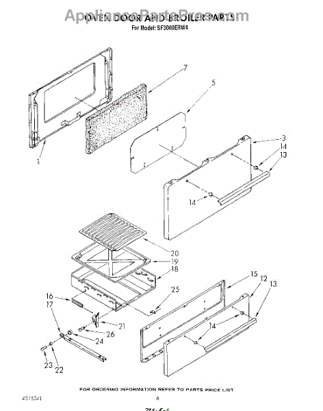 Parts for Whirlpool SF3000ERW4: 05 - Oven Door And Broiler Parts