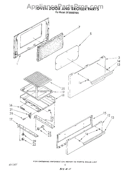 Parts for Whirlpool SF3000ERW5: 05 - Oven Door And Broiler Parts