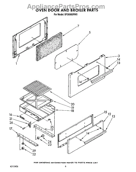 Parts for Whirlpool SF3000SRW5: 05 - Oven Door And Broiler Parts