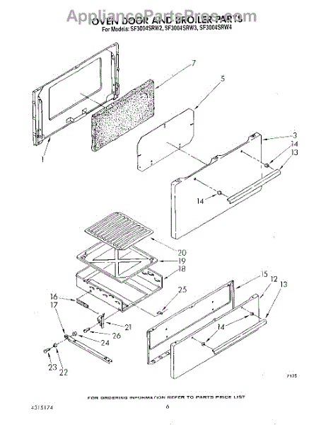 Parts for Whirlpool SF3004SRW4: 05 - Oven Door And Broiler Parts