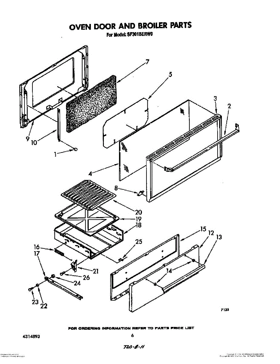 Parts for Whirlpool SF301BERW0: 05 - Oven Door And Broiler Parts