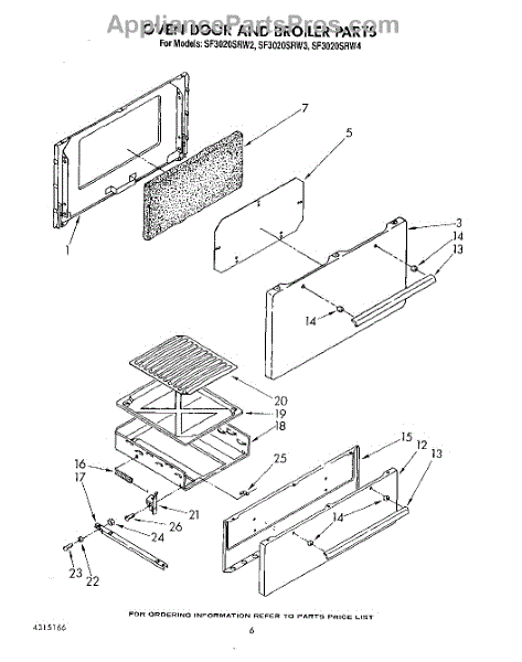 Parts for Whirlpool SF3020SRW4: 05 - Oven Door And Broiler Parts