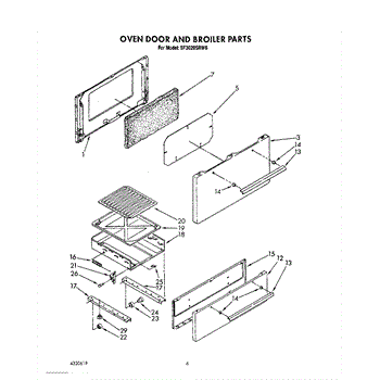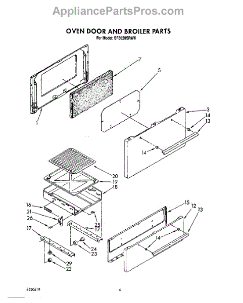 Parts for Whirlpool SF3020SRW6: 05 - Oven Door And Broiler Parts