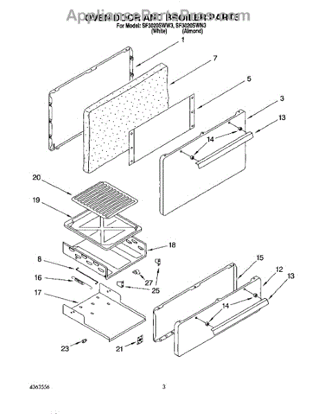 Parts for Whirlpool SF3020SWN3: 02 - Oven Door And Broiler Parts