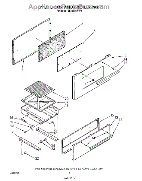 Parts for Whirlpool SF3020SWW0: 04 - Oven Door And Broiler Parts
