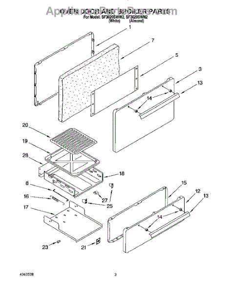Parts for Whirlpool SF3020SWW2: 02 - Oven Door And Broiler Parts