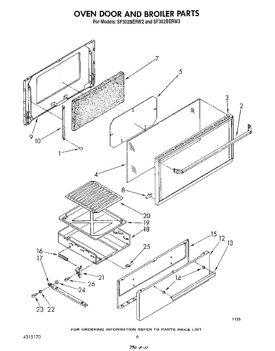 Parts for Whirlpool SF302BERW2: 05 - Oven Door And Broiler Parts