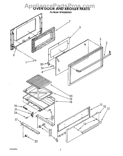 Parts for Whirlpool SF302BEWN1: 05 - Oven Door And Broiler Parts