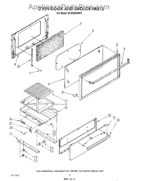Parts for Whirlpool SF302BSRW5: 05 - Oven Door And Broiler Parts