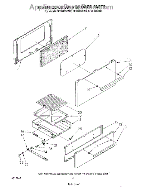 Parts for Whirlpool SF3040SRW2: 04 - Oven Door And Broiler Parts