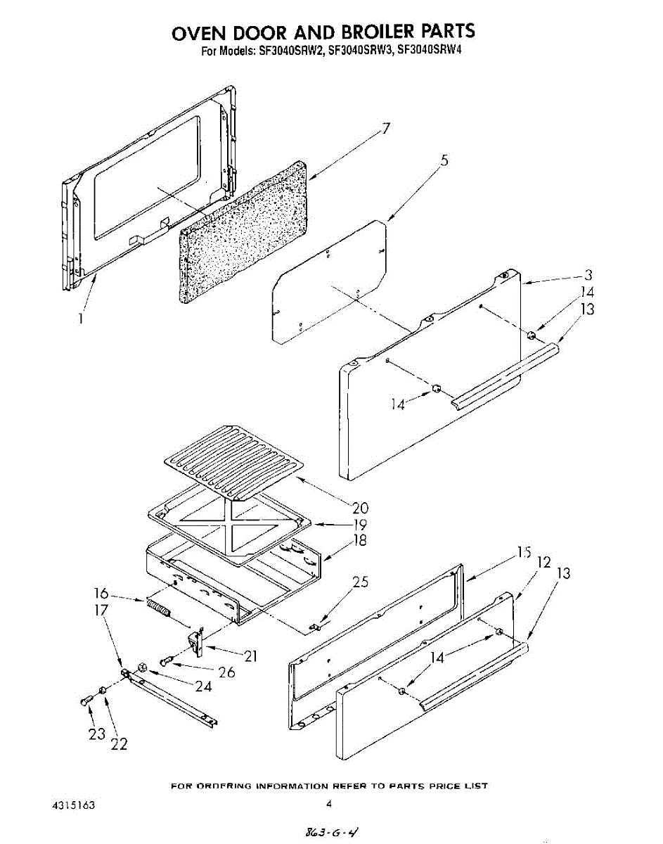 Parts for Whirlpool SF3040SRW3: 04 - Oven Door And Broiler Parts