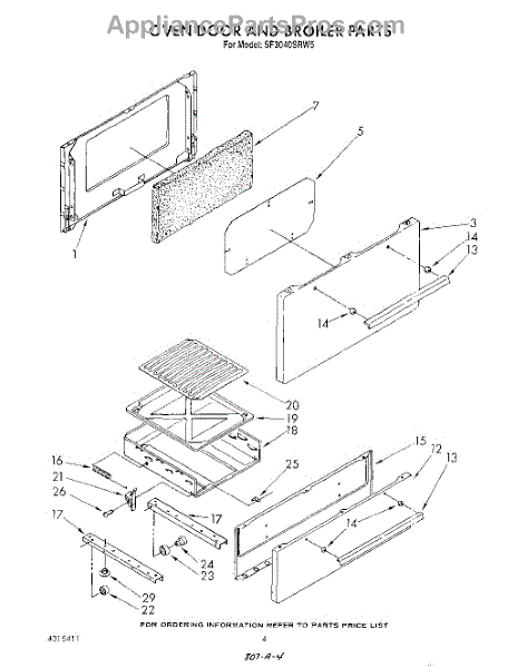Parts for Whirlpool SF3040SRW5: 04 - Oven Door And Broiler Parts