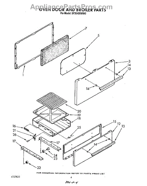 Parts for Whirlpool SF3040SWW0: 04 - Oven Door And Broiler Parts