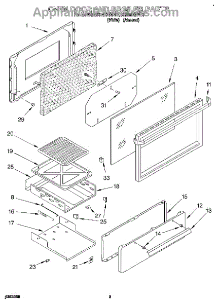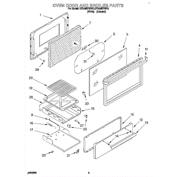Parts for Whirlpool SF305BEWN0: 02 - Oven Door And Broiler Parts